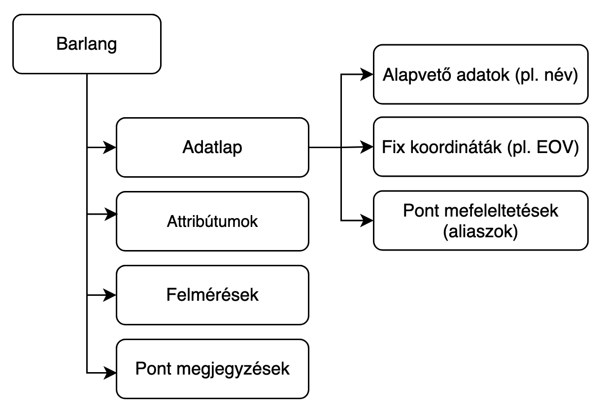 - Barlang alapvető adatait (mint például a barlang neve, vagy kataszteri száma)