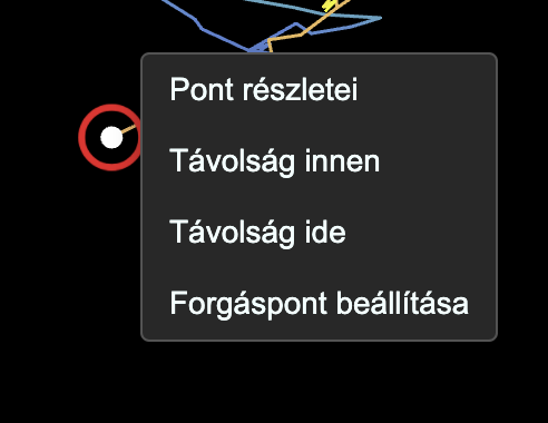 Bal egérgomb kattintással egy pontra megnyílik a kontextus menü: