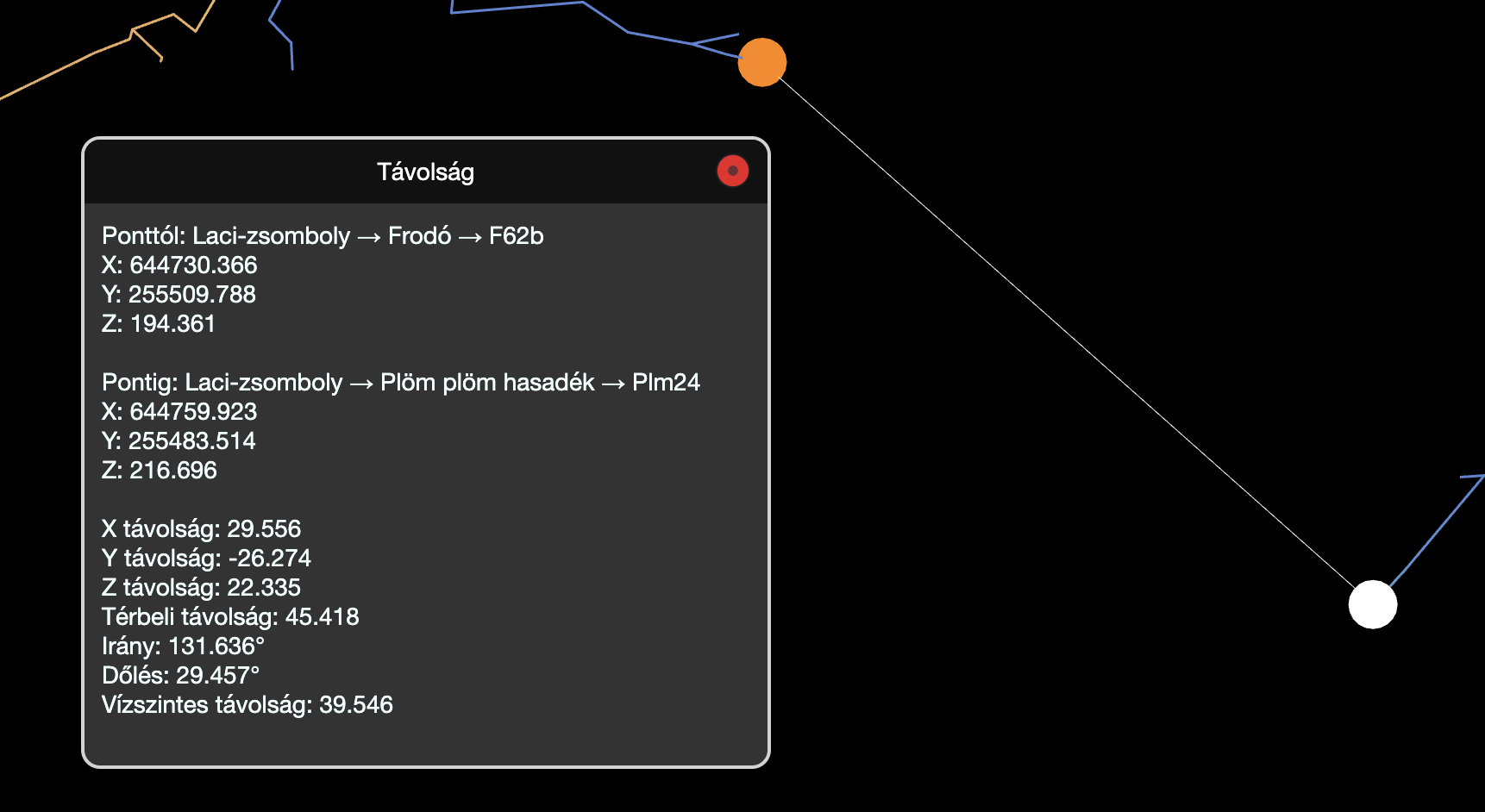 A távolság mérés eredményeit mutató ablak bezárása után a szaggatott vonal és a pontok kiemelése eltűnik..