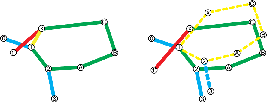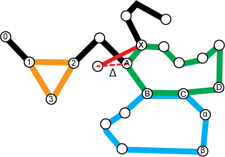 A fenti ábrán a zölddel jelölt hurok esetén az X -> A zárómérés (piros vonal) által meghatározott koordináta eltér az A pont koordinátáitól, amelyet a szaggatott piros vonal jelez.
