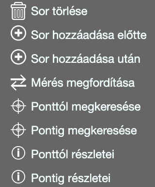 A mérési soron jobb egérgombbal megjelenik a kontextus menü, amely a következő opciókat tartalmazza: