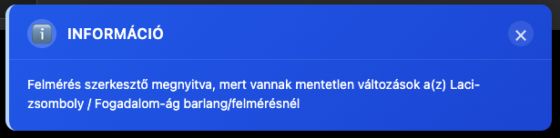 Ha egy felmérés szerkesztése közben próbáljuk bezárni a böngészőt, vagy a Speleo Studio fület, akkor a böngésző rákérdez, hogy biztosan ezt szeretnénk-e tenni. A Speleo Studio elmenti a függő változtatásokat és a projekt legközelebbi megnyitásakor a szerkesztőt automatikusan megnyitja a változtatásokkal.
