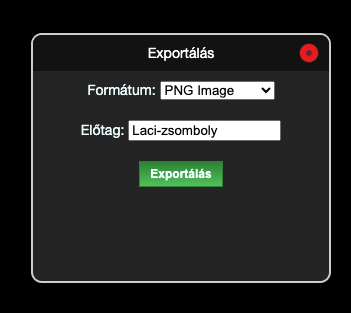 Kattintson az "Exportálás" gombra, amely legenerálja a minden adatot tartalmazó fájlt.