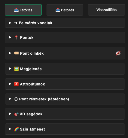 Kattintson a "Letöltés" gombra a beállítások panelben a jelenlegi beállítások JSON fájlba mentéséhez.
